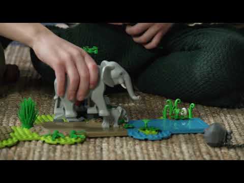 Слоненок кормится рядом с гнездом крокодила, и вдруг — БАМ! Оползень преграждает путь, разлучая малыша с матерью, а крокодил уже подбирается ближе! Мобилизуйте спасательную команду LEGO® City. Высылайте вертолет с лебедкой и гусеничную машину, чтобы убрать деревья и валуны. Когда теленок встретится с мамой, а крокодил вернется к своему яйцу, отправляйтесь на базу для подготовки к следующей операции.